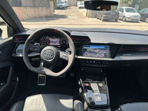 L'Audi RS3 2023 incarne l'excellence automobile avec son design sportif et agressif. Dotée d'un moteur cinq cylindres turbo de 2,5 litres, elle développe une puissance impressionnante de 400 chevaux, offrant des performances exceptionnelles sur la route. Son système de transmission intégrale quattro assure une adhérence optimale, permettant une conduite dynamique et précise. À l'intérieur, l'habitacle haut de gamme est équipé d'une technologie de pointe et de matériaux raffinés, garantissant confort et sophistication. Avec son caractère racé et sa réactivité, la RS3 2023 est le choix idéal pour les amateurs de sensations fortes et de voitures de performance. Son équilibre entre puissance et élégance en fait un véritable bijou de la gamme Audi.